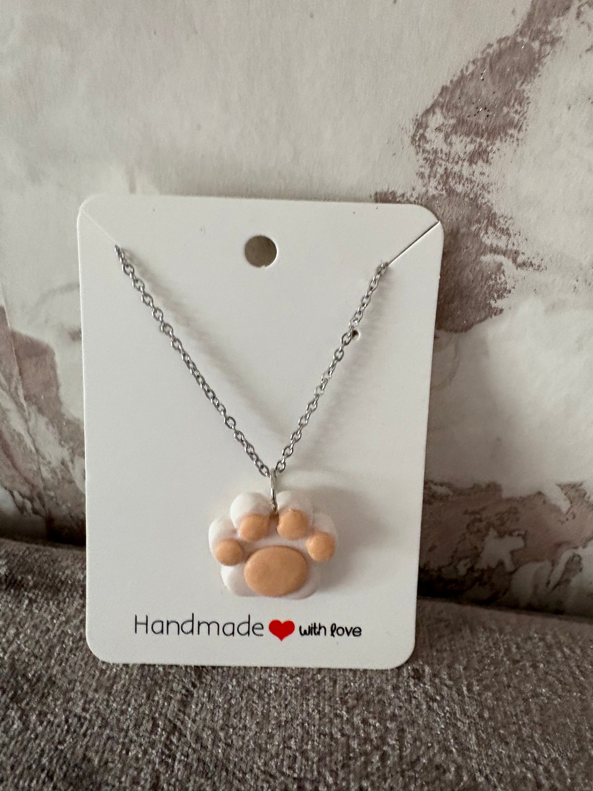 Handmade polymer clay paw necklace